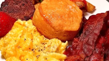 Hearty steak and eggs breakfast plate