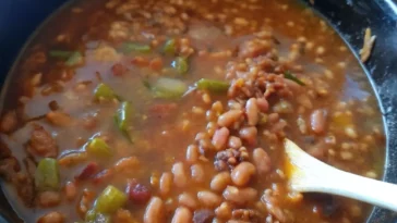 Cookout plate with ribs, cowboy beans
