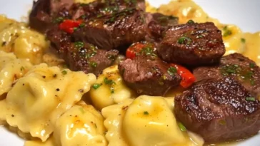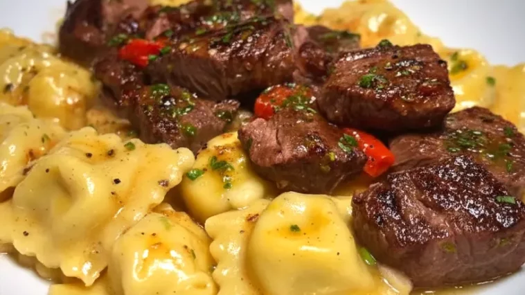 Steak Cuts & Cheese Ravioli in Garlic Butter