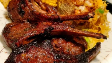 Lamb, shrimp baked potato & corn