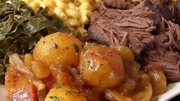 Mac and cheese collard greens sweet potato potatoes and corn bread