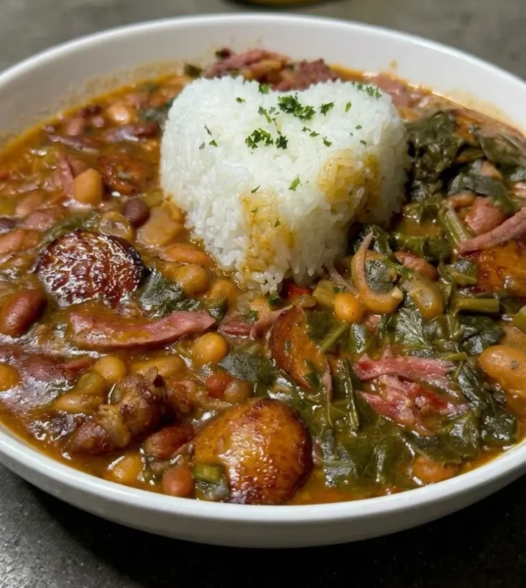 As the beans cook down, they release their starches and naturally thicken the broth, creating a silky texture without needing any cream. The collard greens soften slowly, absorbing all that smoky goodness while still holding a slight bite. When spooned over fluffy rice, the soup becomes a complete, comforting meal that’s both rustic and nourishing. It’s perfect for meal prep, family dinners, or even better the next day when the flavors have had time to deepen.