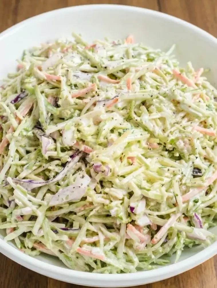 Broccoli slaw is also a great make-ahead salad. In fact, it often tastes even better after sitting in the refrigerator for a few hours because the flavors blend together and the vegetables soften slightly while still keeping their crisp bite. It pairs wonderfully with grilled chicken, burgers, sandwiches, or roasted meats. Whether you’re looking for a quick side dish, a healthy lunch option, or a colorful addition to your table, broccoli slaw is simple to prepare and always a crowd favorite.