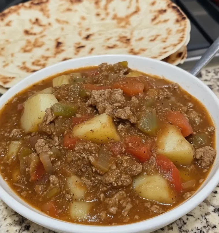 Hearty, flavorful, and soul-warming, Carne Guisada con Carne Molida y Papas is one of those classic Mexican comfort dishes that bring back memories of home-cooked meals made with love. This dish captures the rustic essence of traditional guisados slow-simmered stews that transform simple ingredients into deep, rich, and satisfying flavors. Tender chunks of potato mingle with seasoned ground beef, bell peppers, onions, and tomatoes in a mildly spiced sauce that’s thick, aromatic, and absolutely irresistible when scooped up with freshly toasted flour tortillas.