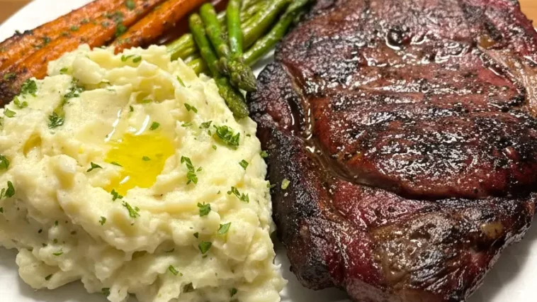 Grilled Ribeye with Garlic Mashed Potatoes & Roasted Veggies