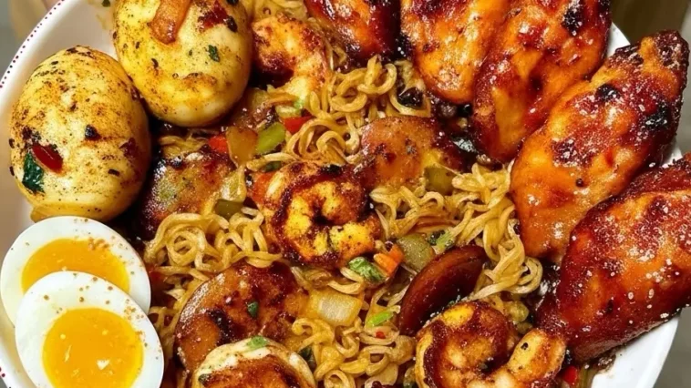 Jambalaya noodles with Cajun BBQ wings