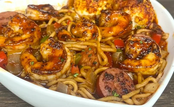 Orleans BBQ shrimp & sausage noodles with homemade noodles