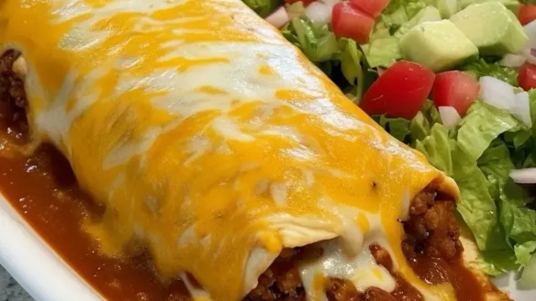 Beef and Bean Burritos Smothered with Red Chile Chimayo