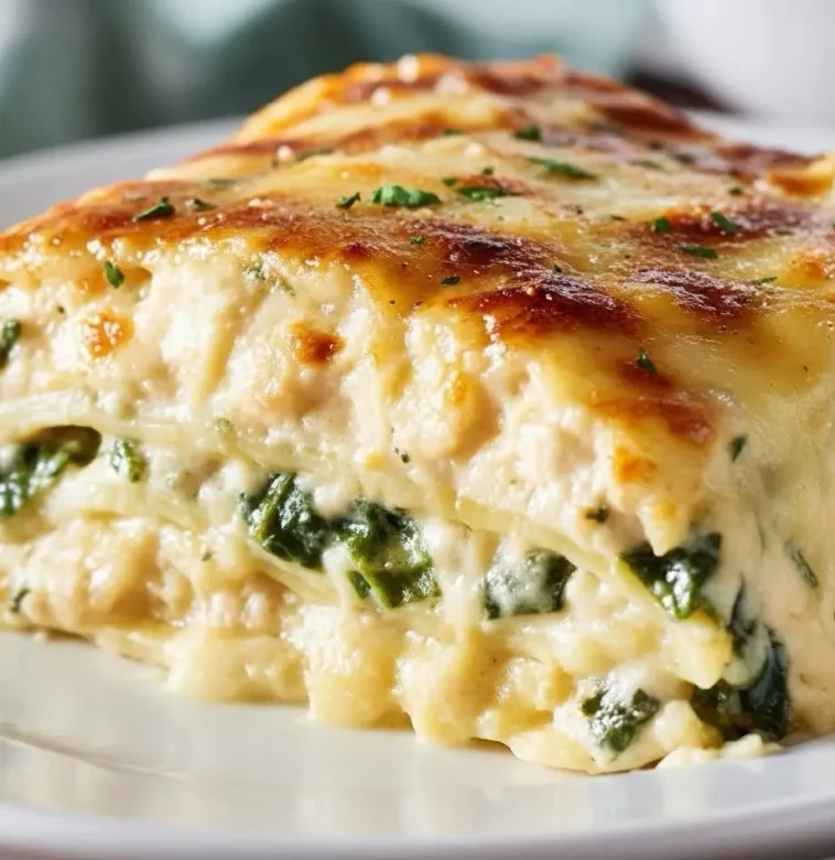 Chicken Alfredo Lasagna is also a smart make-ahead option. The sauce can be prepped in minutes, and the casserole holds beautifully in the fridge or freezer, making it ideal for meal planning and busy schedules. You can use rotisserie chicken for speed, or poached and shredded chicken if you prefer. The combination of ricotta, mozzarella, and Parmesan creates a rich, creamy filling that doesn’t feel heavy thanks to fresh spinach and a hint of garlic. Every forkful gives you tender pasta, savory chicken, and that classic Alfredo indulgence.