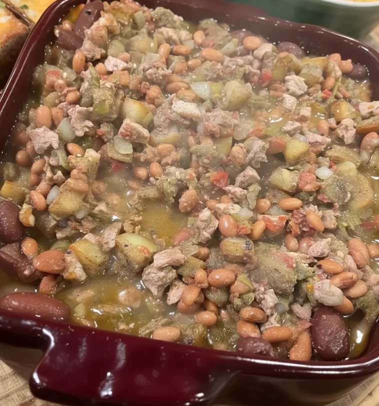 Colorado Hatch Green Chili With Pinto Beans is one of the most iconic comfort dishes of the Southwest. Unlike traditional New Mexico green chili, which is usually thinner and focused mostly on chiles, the Colorado version is hearty, chunky, and stew-like filled with tender pieces of pork, potatoes, roasted Hatch green chiles, tomatoes, onions, and pinto beans. It’s bold, rustic, warming, and incredibly satisfying. Your photo shows the perfect example: a thick, flavorful mixture with visible beans, cubes of pork, and roasted chiles that give it its signature depth.