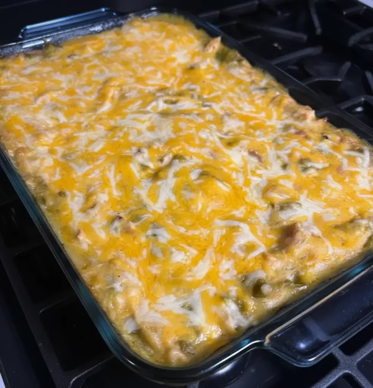 Green Chile Chicken Enchilada Casserole is the ultimate layered comfort dish creamy, cheesy, slightly smoky, and packed with bold Southwestern flavor. Instead of rolling individual enchiladas, everything is layered casserole-style, making it faster and perfect for feeding a crowd. As a food creator, this is one of those recipes that looks amazing when sliced those clean layers of tortillas, shredded chicken, green chile sauce, and melted cheese make for a beautiful cross-section shot.