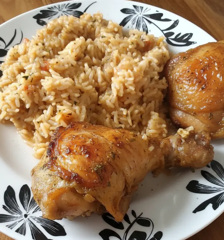 Herb Roasted Chicken with Savory Rice is one of those meals that feel completely homemade, comforting, and deeply satisfying. The beauty of this dish lies in its simplicity: tender chicken seasoned with herbs and roasted until the skin becomes perfectly golden, paired with rice that absorbs every drop of flavor from onions, tomatoes, broth, and seasonings. The result is a plate that tastes like it’s been cooked with care, offering familiar flavors that make you think of home and family meals. What makes this dish so special is how the chicken and rice complement each other. As the chicken roasts, its natural juices become rich and aromatic, infused with herbs like rosemary, thyme, garlic, and black pepper. Those same flavors are mirrored in the rice, giving the entire dish harmony and warmth.