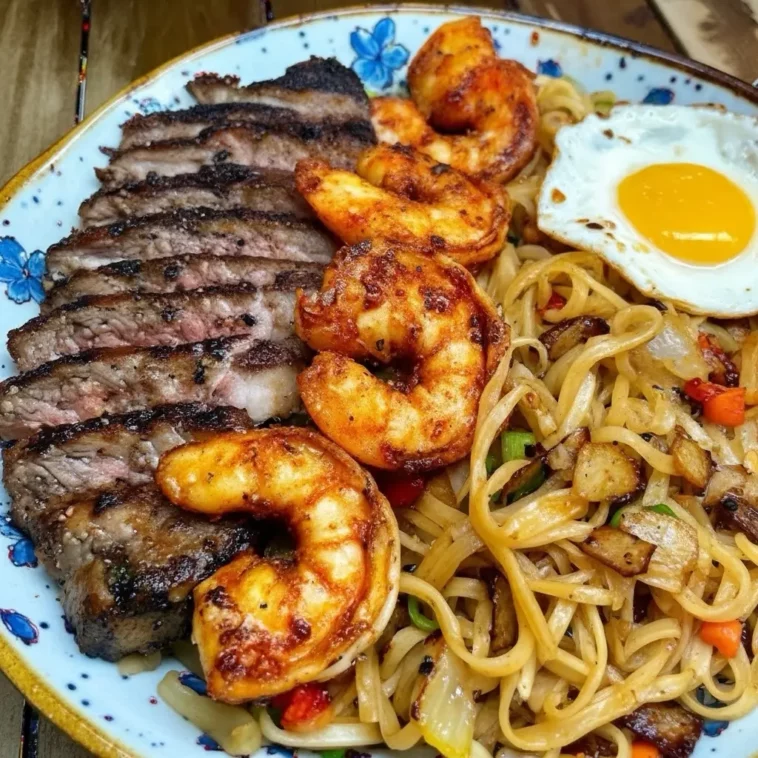 The contrast in textures is what makes it truly irresistible: juicy steak, tender shrimp, and noodles that are both comforting and satisfying. Aromatics like garlic and ginger deepen the flavor, while sauces such as soy, oyster, or sesame oil tie everything together into one glossy, crave-worthy bowl.