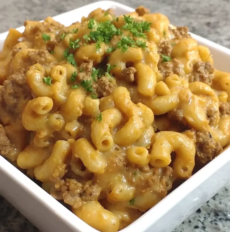 The creamy cheese sauce is what ties everything together. As the pasta finishes cooking, shredded cheese melts right into the skillet, blending with the beef and pasta to form a smooth, velvety texture. It clings to every curve of the macaroni, making each forkful irresistibly comforting. You can adjust the cheese level to make it extra gooey, or stir in different cheeses for a deeper flavor. A sprinkle of fresh cilantro or parsley on top adds brightness and freshness, balancing the richness of the dish.