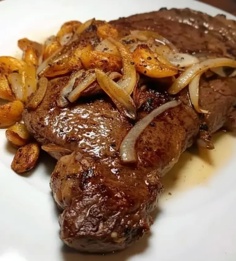 There’s something incredibly satisfying about a perfectly seared ribeye, especially when it’s cooked in a hot skillet with caramelized onions and roasted garlic. This dish is the definition of simple, bold flavor — the kind of meal where the quality of the ingredients shines through. Ribeye is naturally rich and tender, thanks to its beautiful marbling. When it hits the sizzling pan, the fat melts and creates that golden-brown crust steak lovers crave. The edges crisp up, the inside stays juicy, and every bite feels buttery and flavorful. It’s a steakhouse-style experience you can create right at home with just a handful of ingredients.