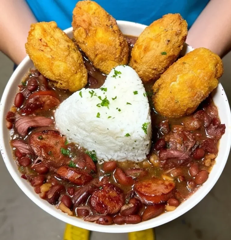 Red Beans and Rice with Crispy Fried Chicken Wings is the kind of soulful, satisfying meal that feels like a Sunday family gathering in the South. The red beans are slow-simmered until creamy and deeply flavorful, infused with smoky sausage, onions, garlic, and warm spices that create a rich, comforting base. Served over fluffy white rice, the beans become hearty and filling, soaking into every grain.