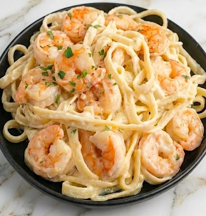 Shrimp Pasta Alfredo is a rich, creamy, and elegant dish that combines tender shrimp with perfectly cooked pasta in a smooth garlic Parmesan cream sauce. This classic Italian-inspired recipe is popular because it feels like a restaurant-quality meal while still being easy enough to make at home. The silky Alfredo sauce coats every strand of pasta, while the shrimp adds a delicate seafood flavor that pairs beautifully with the creamy sauce.