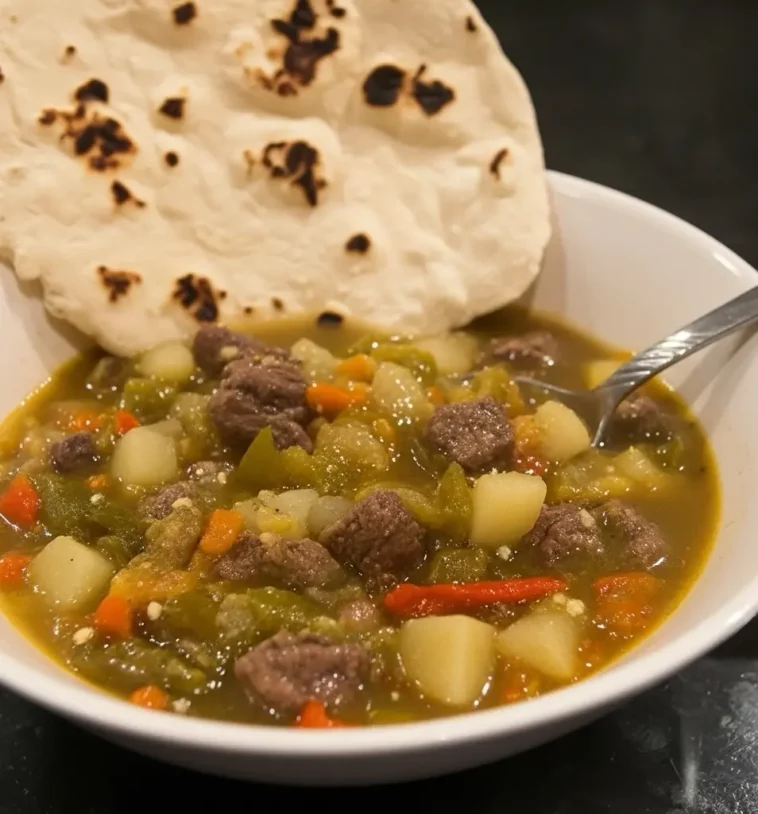 Simple Green Chile Stew with Fresh Tortillas is a comforting, rustic dish rooted in Southwestern and New Mexican cooking, where green chiles are celebrated for their earthy heat and deep flavor. This stew is all about simplicity: tender chunks of meat, soft potatoes, and a rich green chile broth that slowly comes together into something incredibly satisfying. The green chiles provide warmth rather than overwhelming spice, making the stew cozy and nourishing, especially on cooler days. It’s the kind of meal that fills your kitchen with inviting aromas and brings everyone to the table without much effort.