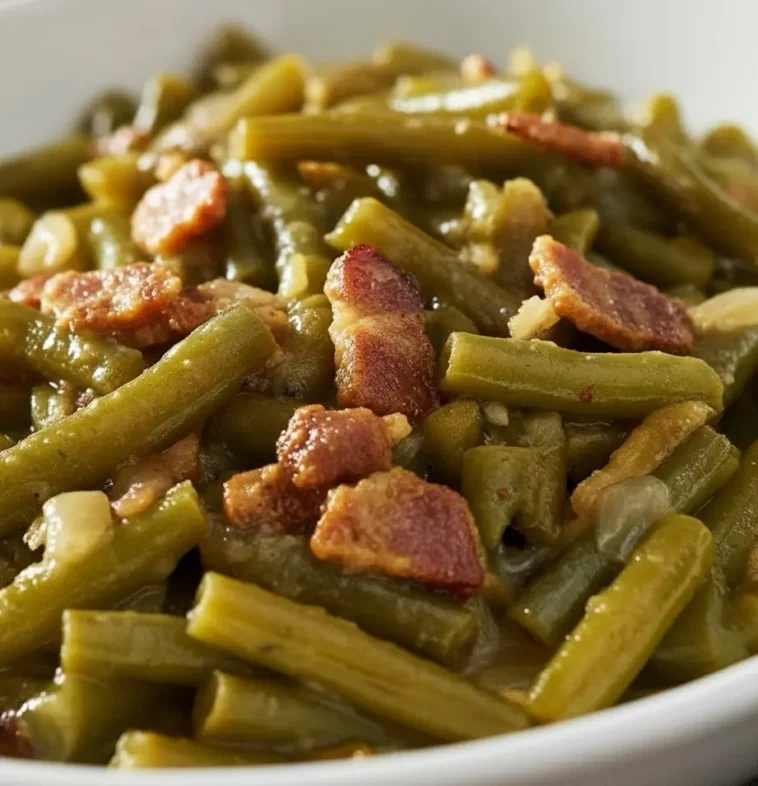 What makes Southern green beans special is patience. As the beans cook, they soak up the smoky, salty flavors from the bacon and broth while releasing their own natural sweetness. The onions soften and melt into the pot, creating a flavorful base that coats every bean. The result isn’t just a side dish—it’s a soul-warming bowl of nostalgia that tastes even better the next day. Many cooks grew up with these beans simmering on the stove for hours, filling the house with an unmistakable aroma that signaled something good was coming.